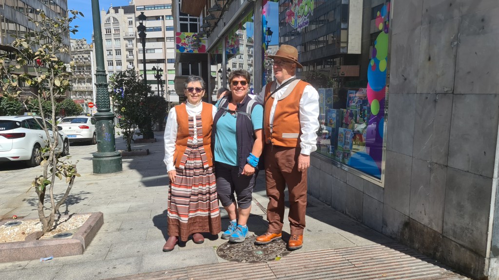 Un Camino de Santiago programado para que pueda hacerlo cualquier persona con mínimas capacidades de senderismo: “Una guagua de apoyo que te sigue todo el camino por si fuera necesario”. Algo nuevo para mí que, desde 2014 he hecho ya 7 caminos de Santiago (llevando conmigo la mochila con todo) y, de algunos he repetido tramos. Así pues, sin pensármelo dos veces aquí estoy formando grupo con 49 personas más. Un viaje organizado por el Ayuntamiento de El Rosario dentro de su programa anual de senderismo “Patean2023”