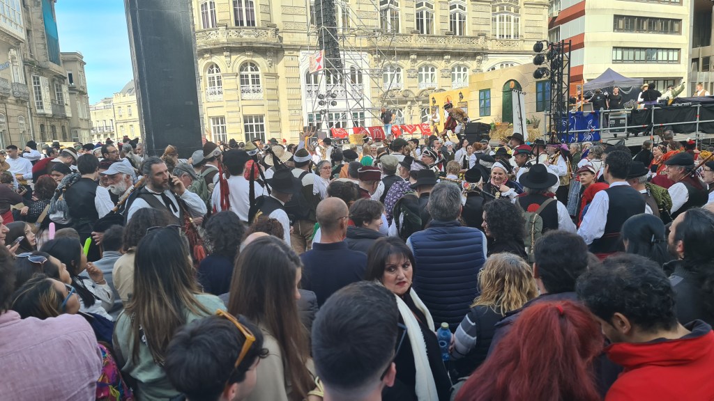 Tuvimos suerte hoy pues Vigo estaba en fiestas. En estas instantáneas y el vídeo podemos comprobarlo