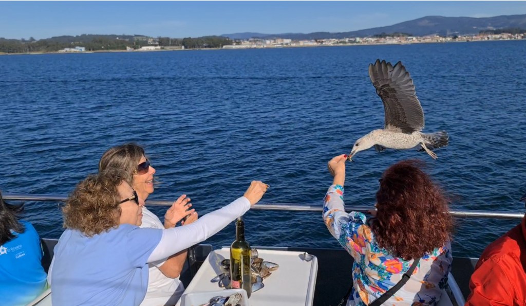 Tarde libre para conocer O GROVE para disfrutar de los hermosos paseos de esta villa. Desde este turístico emplazamiento se pueden realizar caminatas a otros sitios cercanos como: la isla A Toxa, uno de los principales reclamos por sus balnearios, a escasa distancia de O Grove o la famosa playa de la Lanzada. Subir al Miradoiro da Siradella, el punto más alto de la península, es otra buena opción para disfrutar de la panorámica de O Grove y la ría de Arousa. Un nutrido grupo optamos por hacer la ruta de las bateas con degustación de mejillones al vapor, ostras y vinos de la zona.
